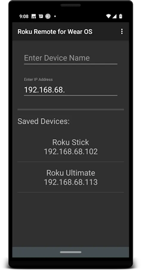 After initial setup of the Wear OS app (see below), it is a fully stand-alone app on your Wear OS device. It gives you full independent control of all of your Roku devices connected in your WiFi network. If you want to control a different Roku device, you can change devices from the Wear OS device without pulling out your Mobile device.