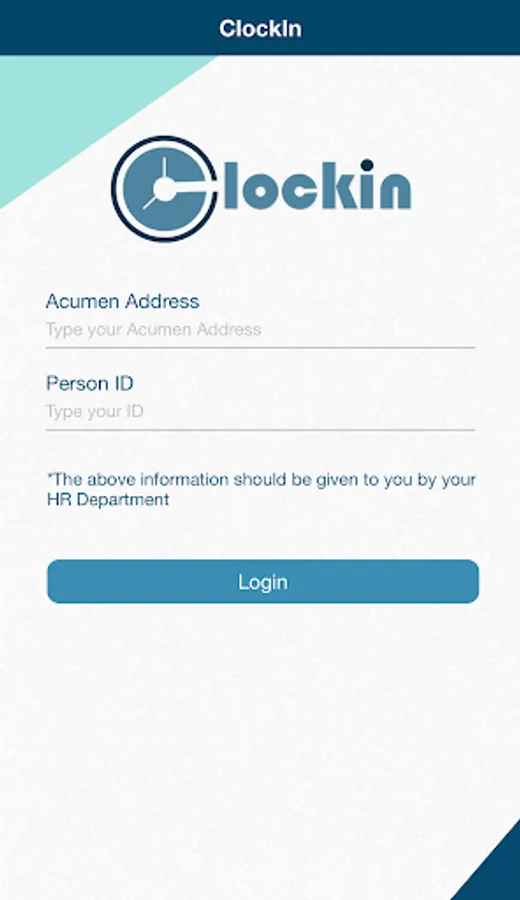 The Acumen Mobile Clock app is used in conjunction with an Acumen Web subscription.