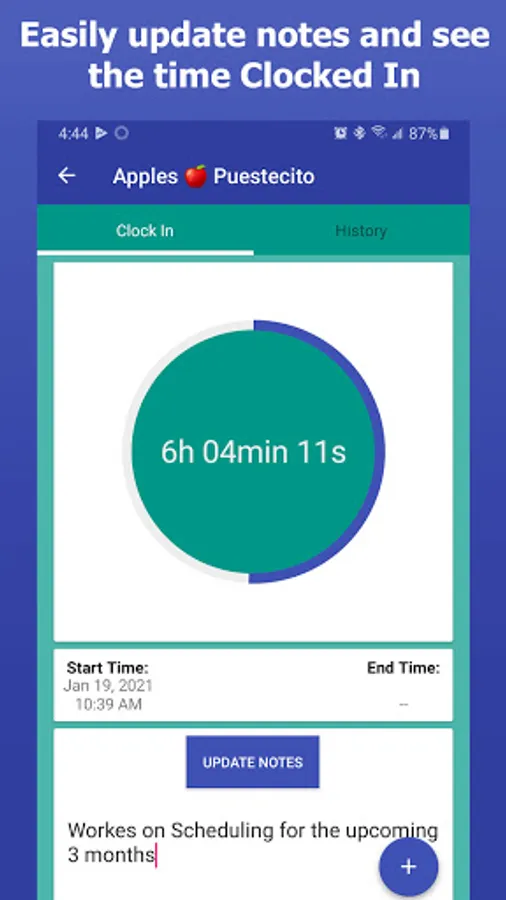 Whether you work for an employer or are an independent business owner, log your hours of productivity: be it work, education, or personal projects. It's simple - just "Clock In."
