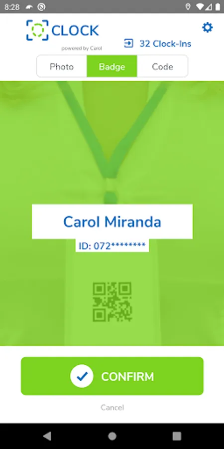 With this app, you can identify your employees through facial recognition, QR code or typing the person ID. All of this data is shared with Carol and can be viewed and analyzed.