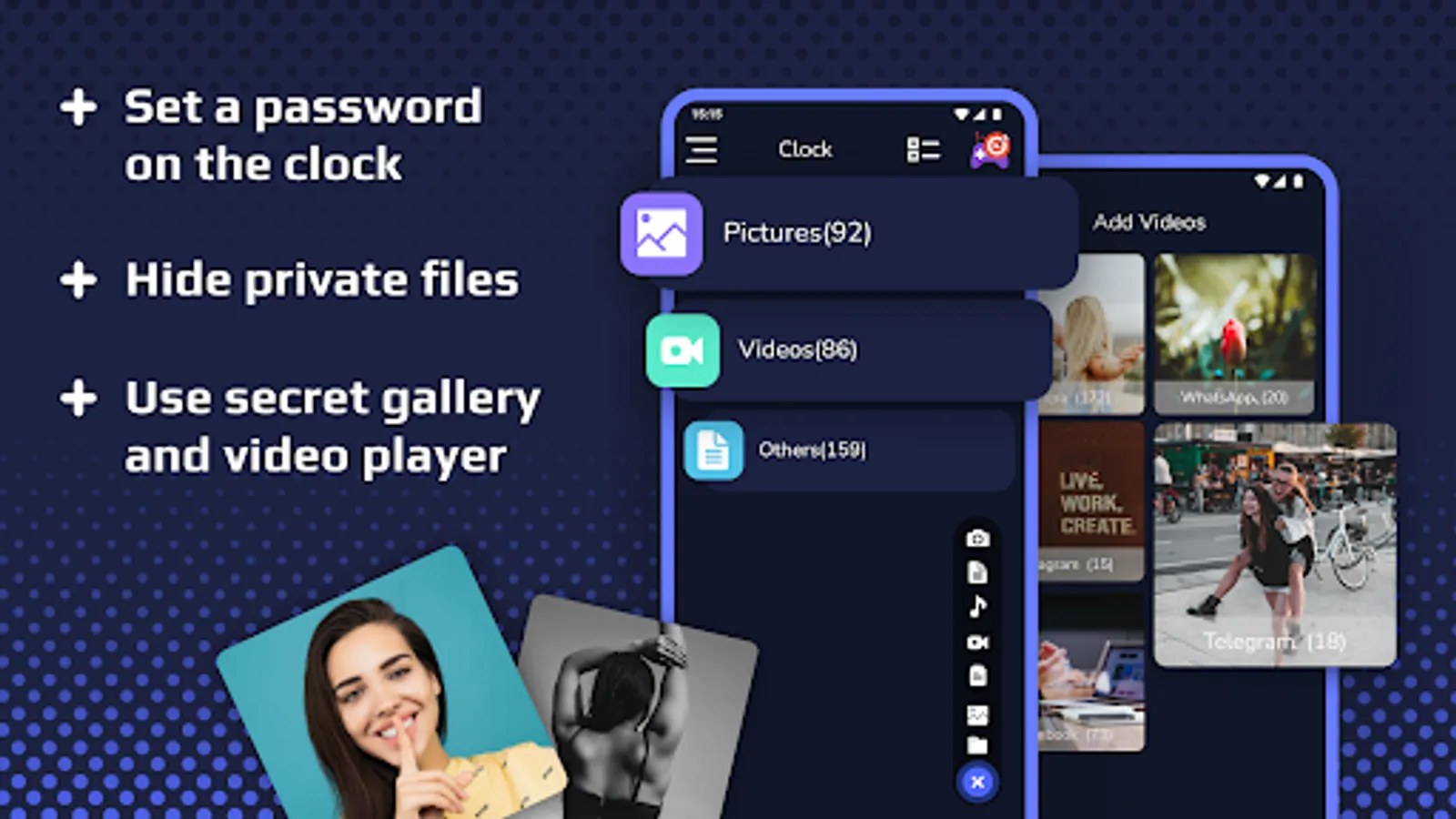 Clock Vault - Secret Photo and Video Locker adds an extra layer of security to your private photos, videos, and apps to keep them secure in a secret folder.
