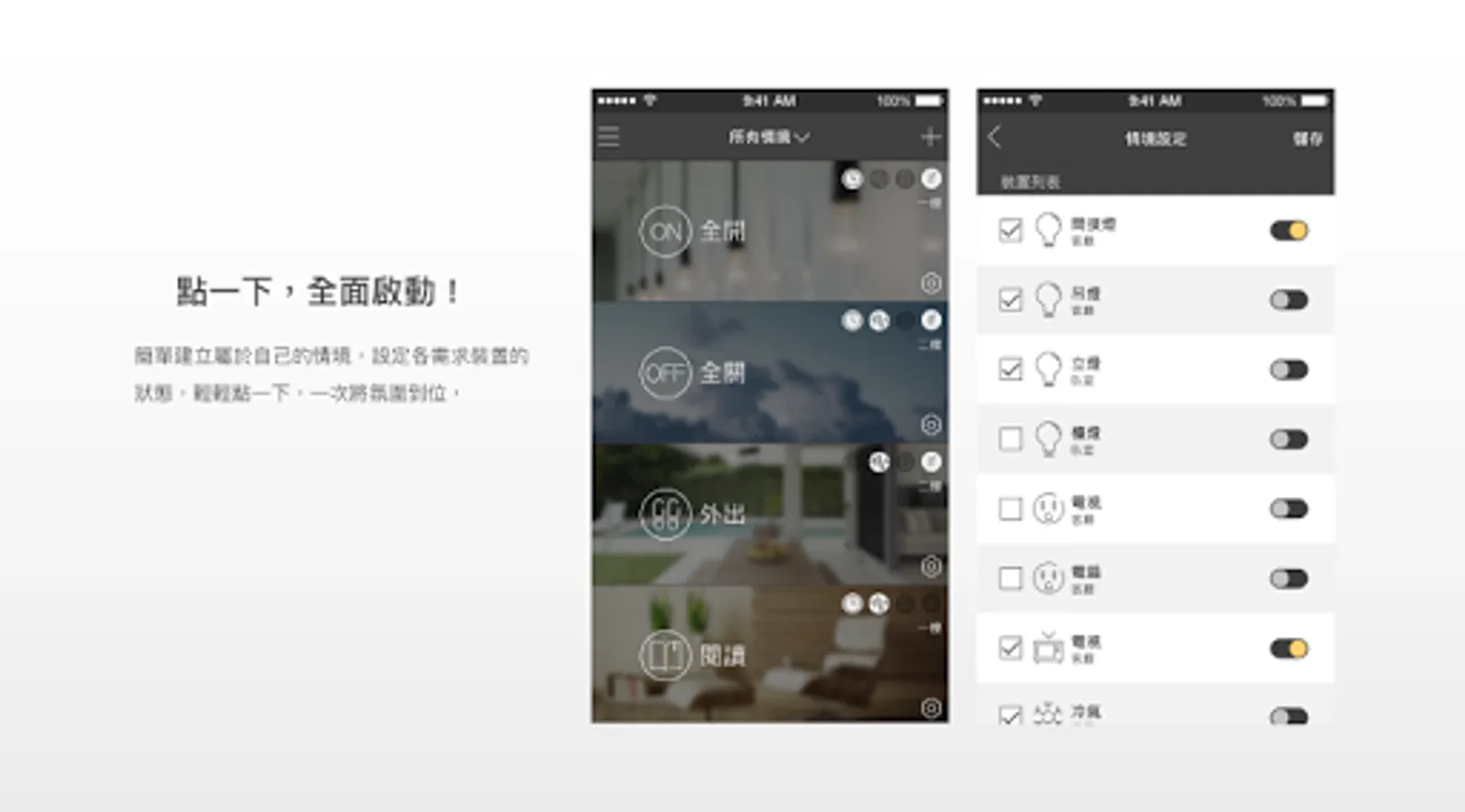 2. 將多個裝置的狀態設置為一情境進行一鍵觸發,並可設定定時。