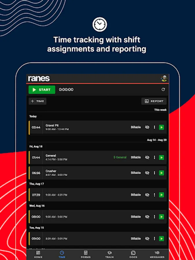 Ranes combines timekeeping, safety, and compliance solutions in an easy-to-use, customizable app. Whether it’s clocking in for the day, training, messaging, or incident reporting, everything you need to keep your operation running smoothly is on your mobile device.