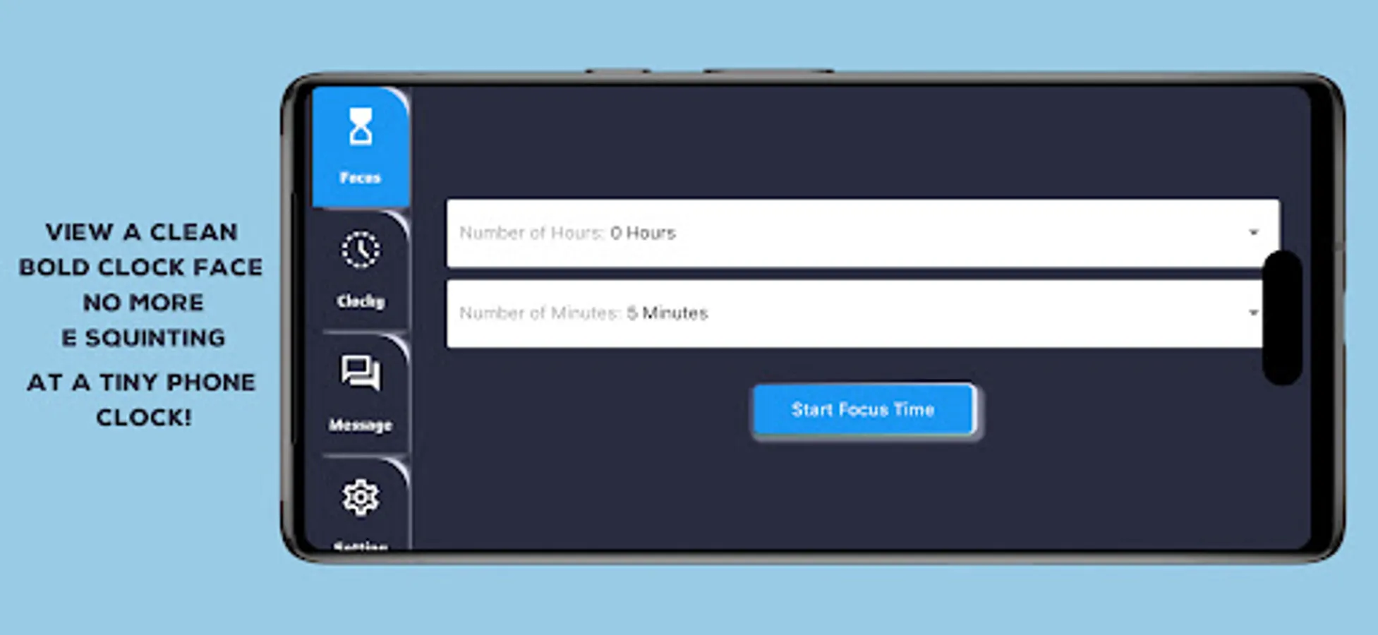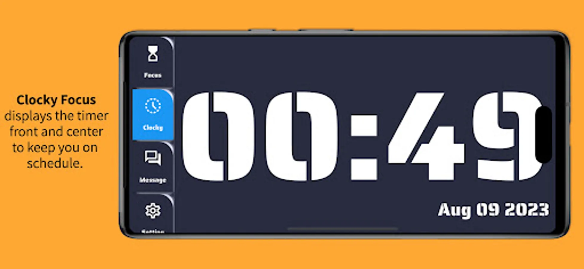 Clocky Focus is the app that helps you stay focused and on track by combining a bold clock, countdown timers, and full screen messaging. Whether you're a student, professional, or anyone who wants to better manage their time, Clocky Focus declutters your phone and displays the essential info you need.