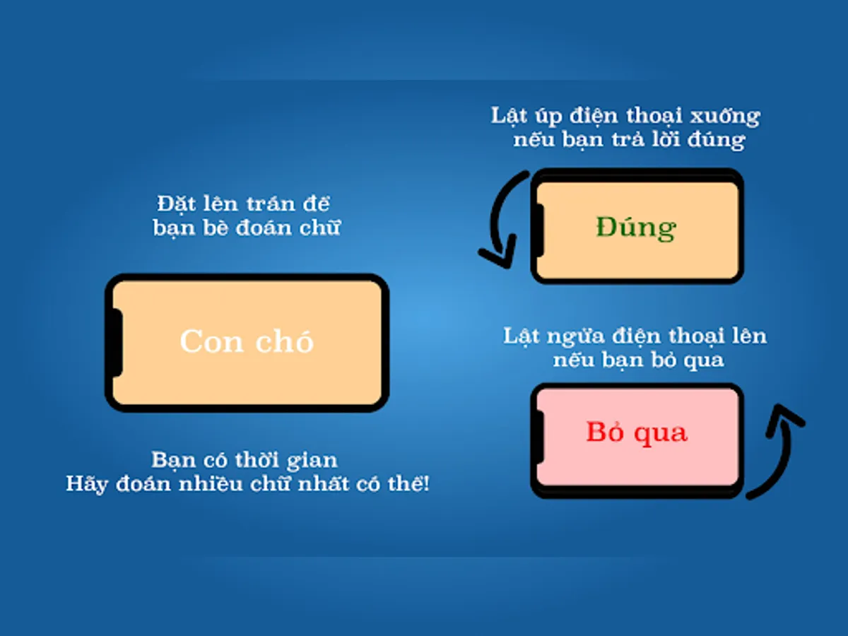Game đoán chữ cùng nhau, một đang board game khi nhóm bạn cùng nhau tụ tập chơi game. Một người cầm điện thoại để lên trán và không thấy từ hiển thị trên màn hình, những người còn lại mô tả cho người đó đoán đúng chữ thì thắng