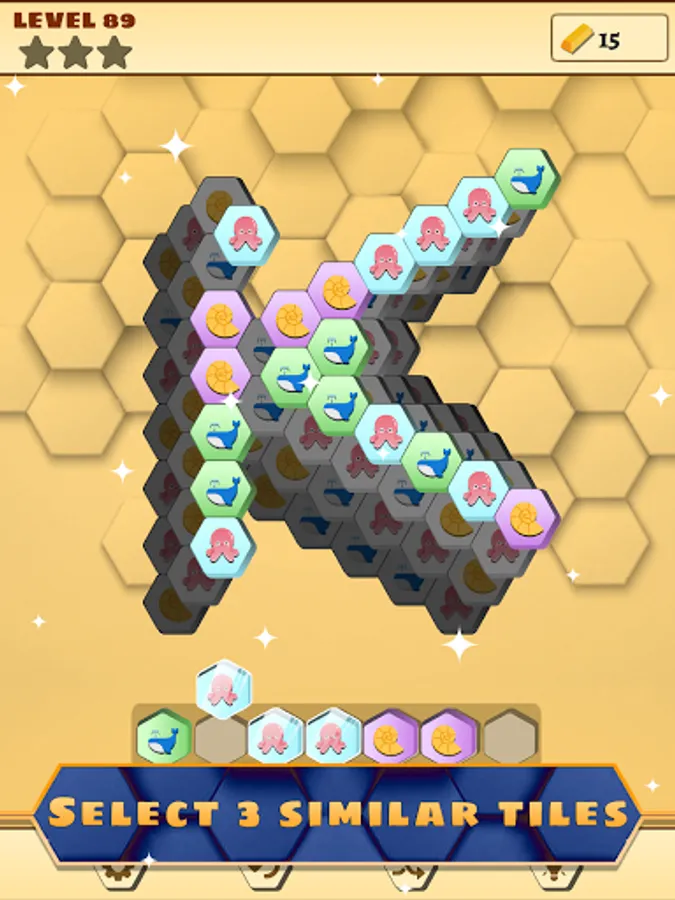 Tap any tile onto the board. Match 3 same tiles on the board to clear it. Puzzle will complete when all tiles are cleared. Game will fails if you have seven or more tiles on the board.