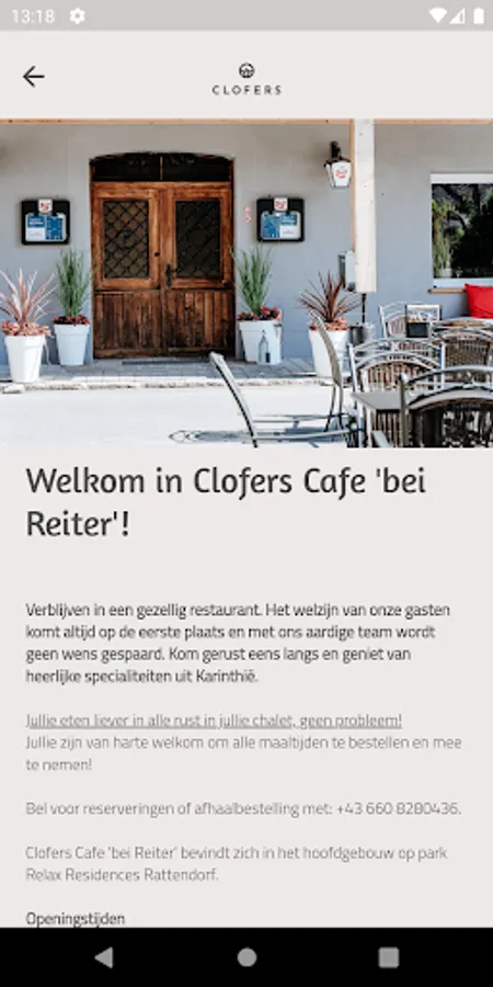 Bij Clofers komen onze gasten niets tekort en bieden we talloze mogelijkheden voor jong en oud. Wandelen in de zomer of op de skipiste in de winter; vakantieplezier gegarandeerd! Overtuig jezelf en laat je volledig in de watten leggen! Met behulp van onze app kunt u volledig geïnformeerd van uw verblijf genieten. Zo vindt u alle nodige informatie over de voorzieningen en faciliteiten die wij bieden.