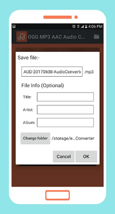 OGG MP3 AAC Audio Converter is a smart tool convert most popular audio formats like: OGG, MP3, AAC, m4a, 3gp, wav, amr and more. you can convert Ogg to mp3 or mp3 to aacc easily.