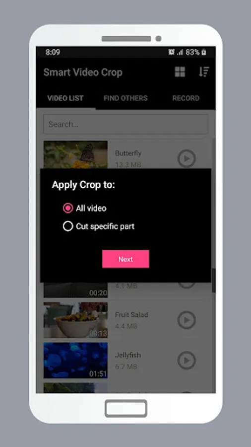 Smart Video Crop is a handy tool to crop any part of any video with many features. You can choose any video on your mobile and then choose the crop type. there is 1:1, 4:3, 16:9, 3:2 and free crop.