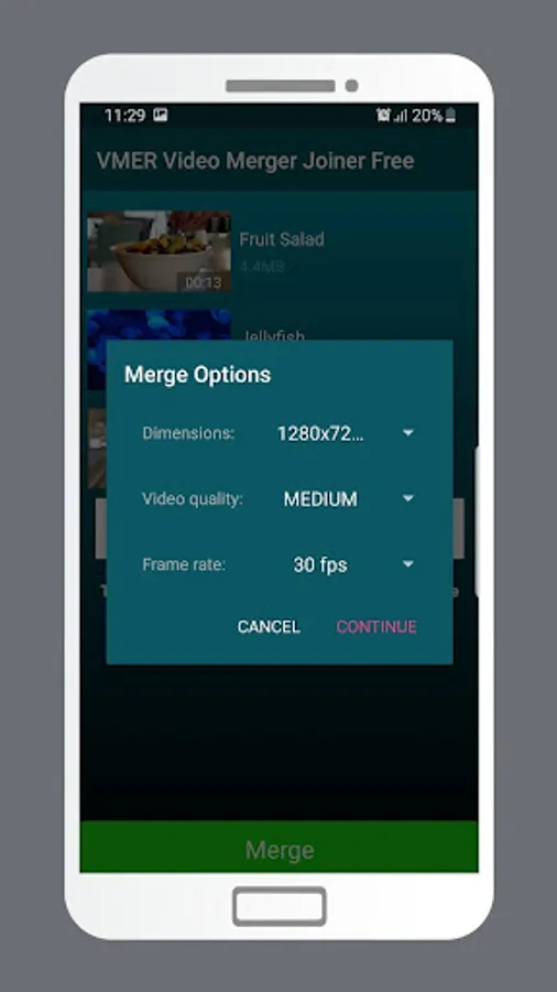 VMER - Video Merger Joiner is a simple app to merge and join video files into one file. it support different video formats with different frame rate, same frame size and same audio rate. It supports adding unlimited video files and join them or merge into one file.