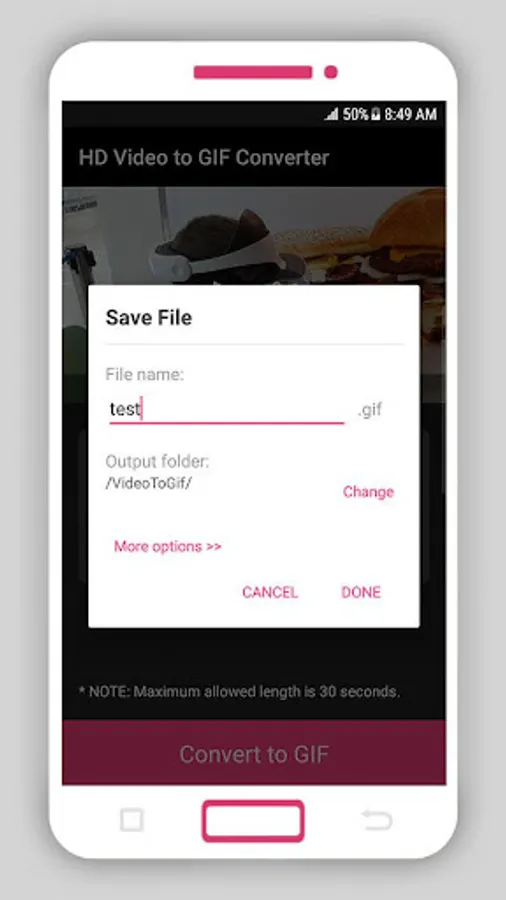 HD Video to GIF Converter is a smart to convert any video file like mp4 or 3gp to GIF animated image. by this tool you choose the range from the video file, frame size, frame rate and quality.