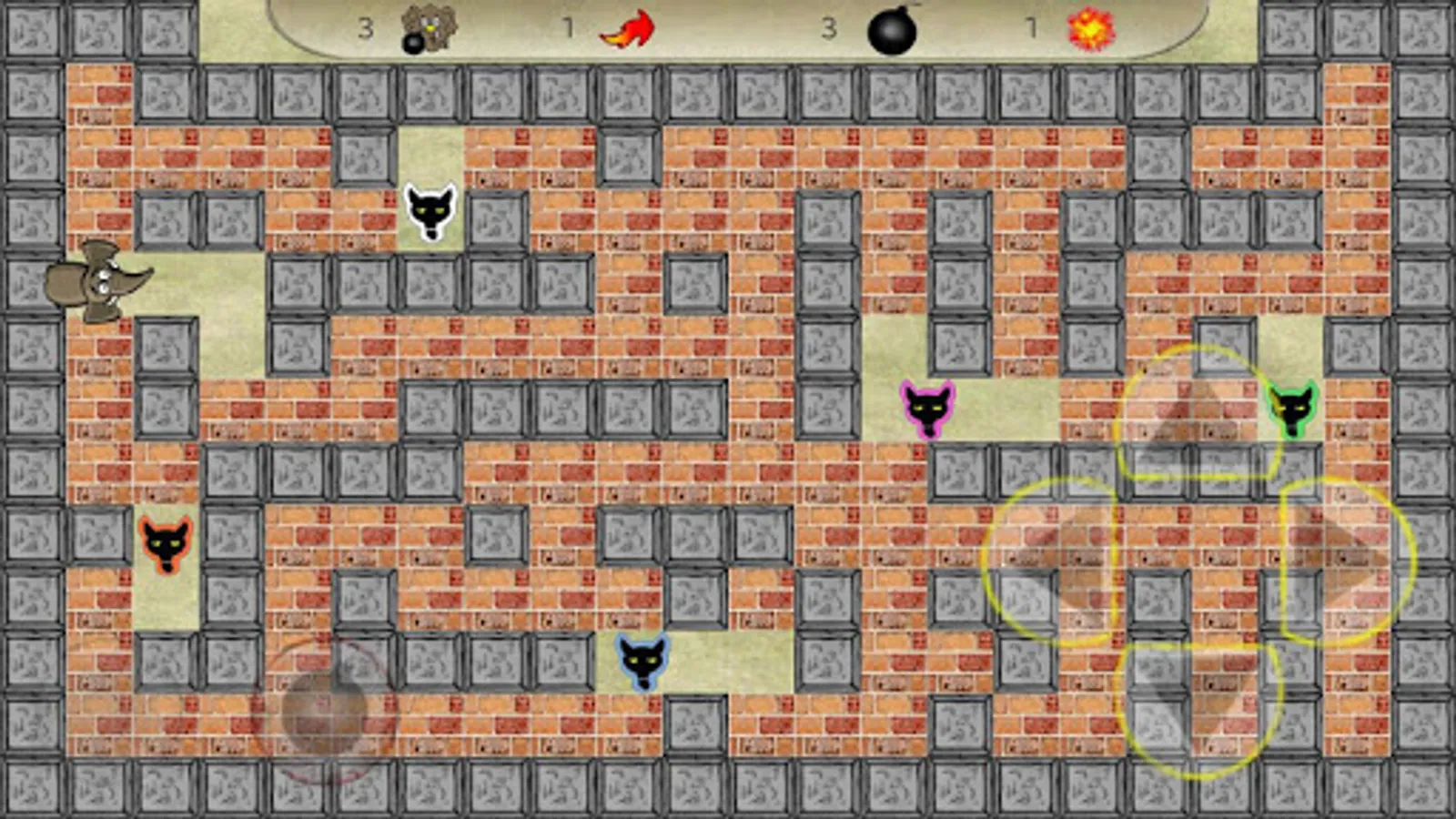 Bomber Elephant is a puzzle game where the goal is to find the hidden objects behind the bricks. To overcome the various levels you must find the exit door and its key, trying to survive the various ghosts. To unravel the cells, you must place bombs and detonate them, avoiding getting hit by the explosion. Besides the door and the key, behind the bricks you can find various enhancements, including multiple bombs, more speed, and more explosive power. The enhancements acquired are lost when you die.