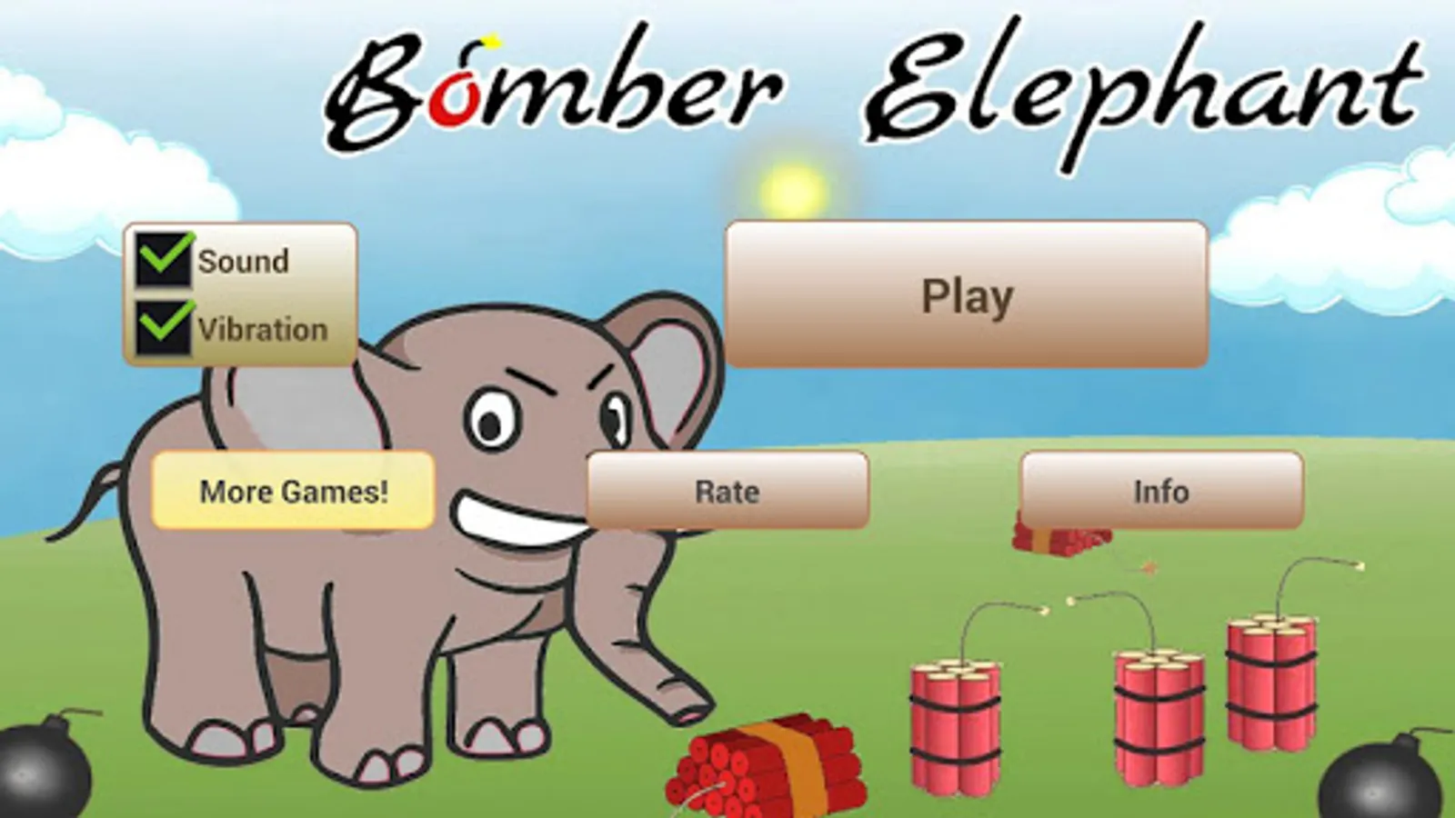 To move the elephant there are the arrow keys and, to place the bombs and make them exploded there are the corresponding buttons.