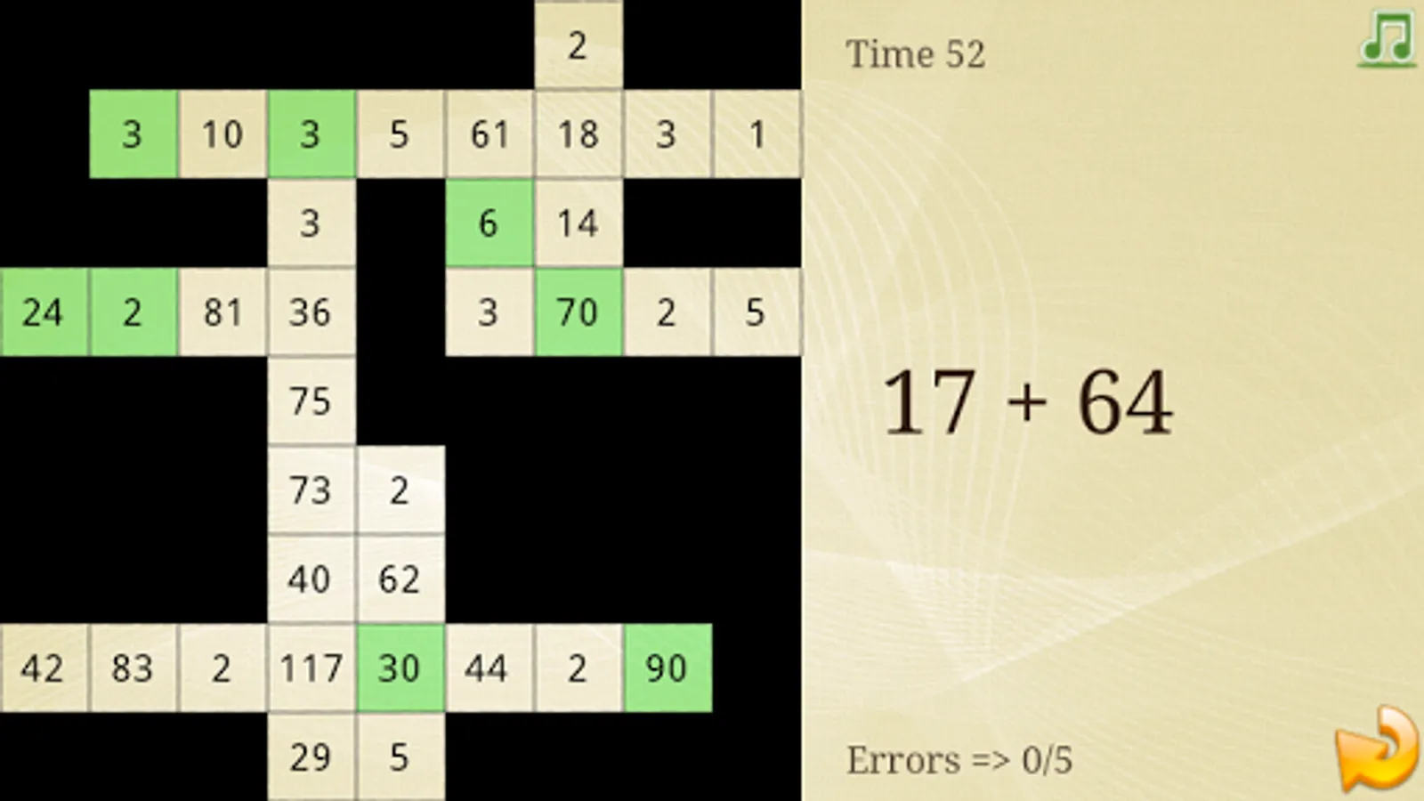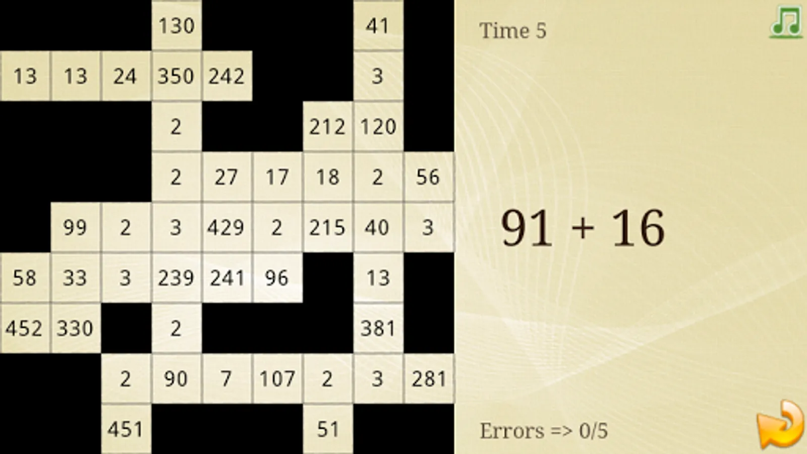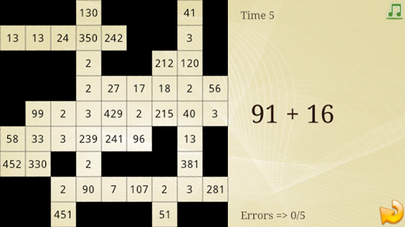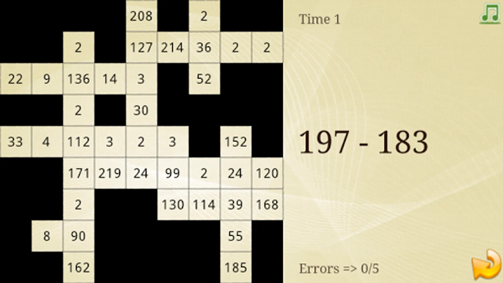Test your math skills! Mathematics is an addictive game of mathematical logic similar to the classic crossword puzzles. Consists of a square grid of eighty-cells filled with numbers. The objective of the game is to find the number in the grid corresponding to the result of the math shown in large on the right (of the type x + y, xy, x * y or x / y). If the selected number is correct, the device propose the next operation to search, otherwise the cell clicked will return to its original color by decreasing the number of moves available.