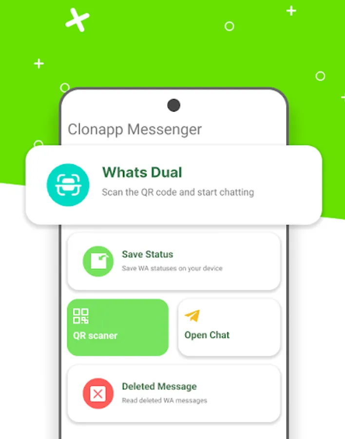 Clonapp Messenger is the original app to clone your personal WA account into other phone.