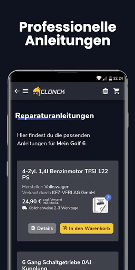 Clonck is the app for your vehicle repairs 🔧 with which you can order suitable car parts and original repair instructions in next to no time.