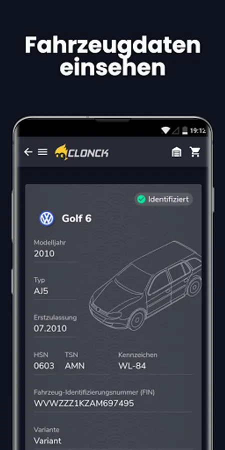 With Clonck you will never again order the wrong car parts for your vehicle. By recording your vehicle data and having it evaluated by the app, we can clearly and reliably determine the individual configuration of your vehicle. The evaluation of your vehicle data takes place automatically and in the background, so that you do not have to deal with it yourself. After the evaluation, we will only show you the car parts for sale in the app that actually fit your vehicle and its individual equipment 🔩.Compared to entering the manufacturer key number (HSN) or type key number (TSN), as is currently used by many online parts dealers, the evaluation of the vehicle data at Clonck offers a decisive advantage: Include the vehicle identification number (VIN), the analysis at Clonck contains all the information required for an error-free purchase of spare parts.