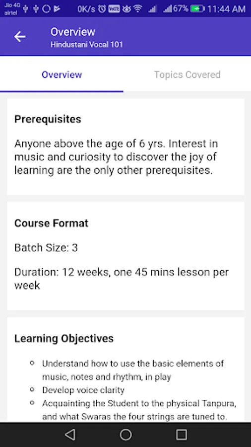 Learning Indian Classical Music is a long & rewarding journey and app provides you an opportunity to learn music at your own pace on your favorite device.