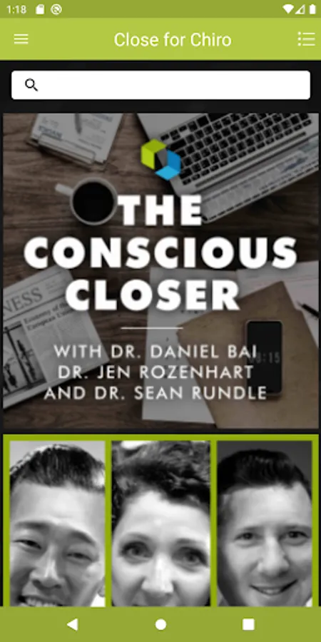 Close For Chiro provides the most convenient way to access business training for chiropractors. We help you impact a life, be respected, and master a rapport in the modern marketplace. Jennifer Rozenhart, DC, Daniel Bai, DC and Sean Rundle, DC bring years of experience and success stories using the methods that they share via this app.