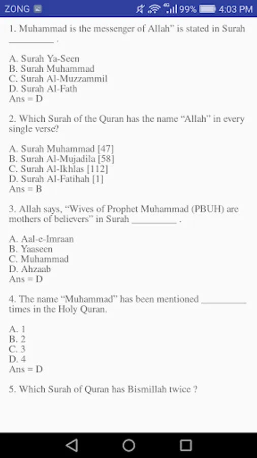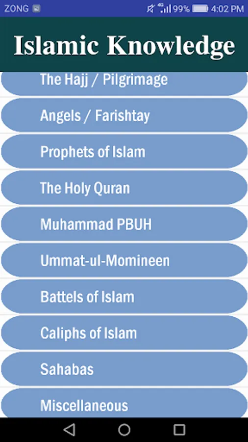 This app consists of different topics related to Islam and each topic is expressed in details  to test your knowledge.