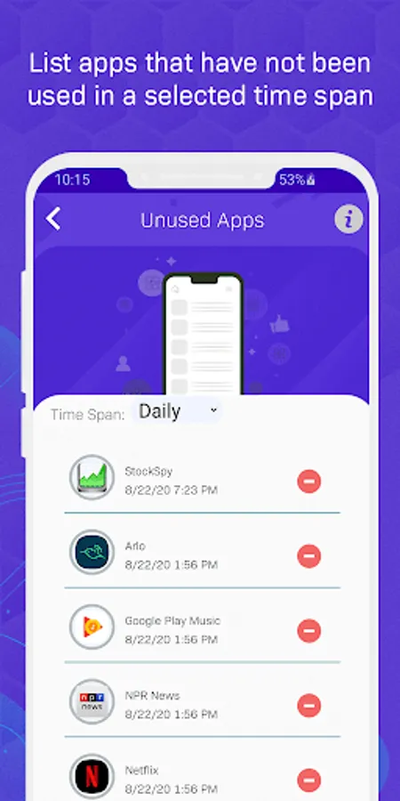 >> If selected, you are given the option to choose a time frame in dropdown menu to show all apps that have not been used in that selected time frame