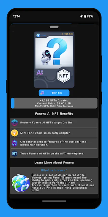 - Mint NFTs on the Fone Network easily, quickly, and efficiently.