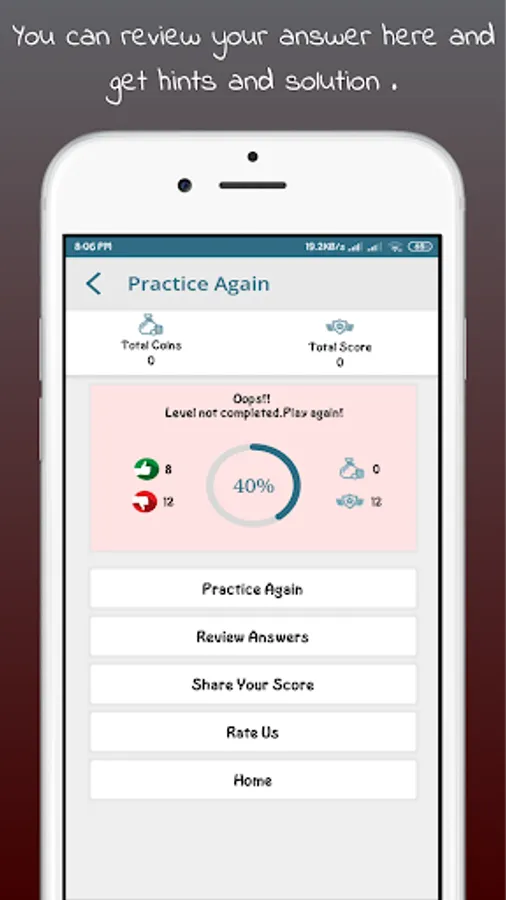 * You can report the question if you found any errors while reviewing your answer and you can also ask for hints in reporting section, just tell please send hints and solution then our team will answer you shortly.