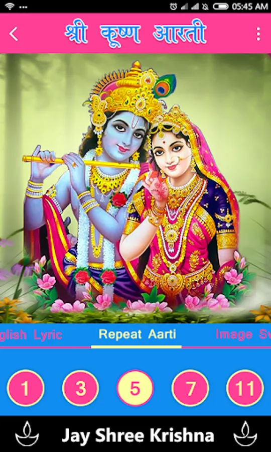 Krishna Aarti & Chalisa Audio App provides most famous Lord Shri Krishna Aarti, Chalisa at one place. This app is for all religious people who want to hear Lord Shri Krishna Aarti, Chalisa at a single place with complete devotion.