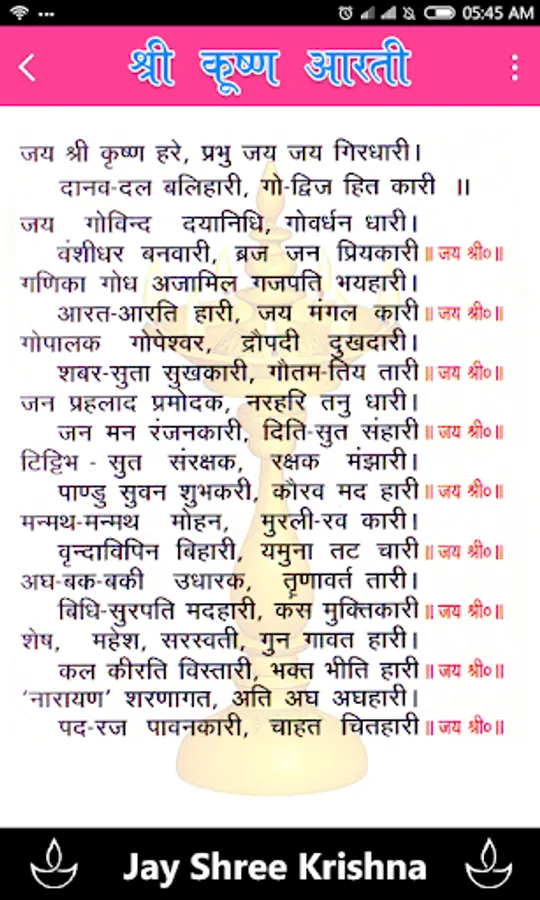 So download it and easily set high definition Lord Shri Krishna Aarti, Chalisa and wallpapers as Ringtone, Alarm tone, Contact Ringtone, Notification tone and wallpaper.