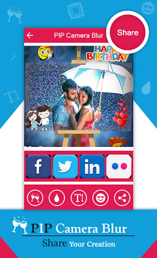 - Share your PIP camera photo effecting image with your friends and family via whatsapp, Instagram, facebook, etc.