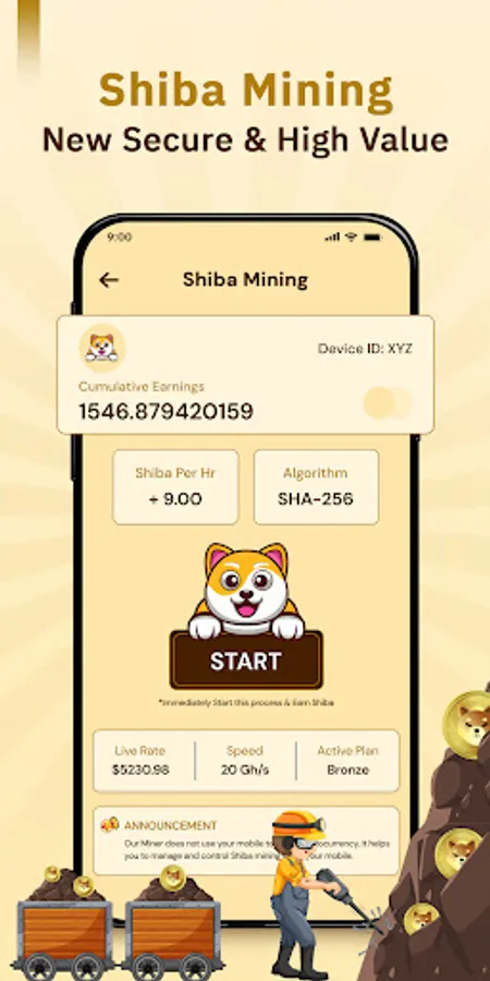 The Shiba Earn Miner application offers the easiest interface to make free mining with a single click in the advanced crypto money world. By creating an account, you will be able to start crypto mining quickly and easily.