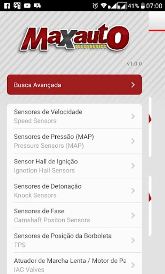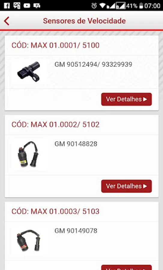 Maxauto Eletronics Automotive Parts Industry Parts Catalog, where users can search for parts that the industry produces for each vehicle, as well as their characteristics and applications.