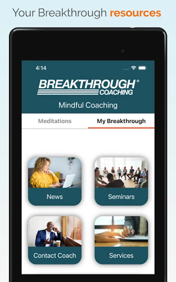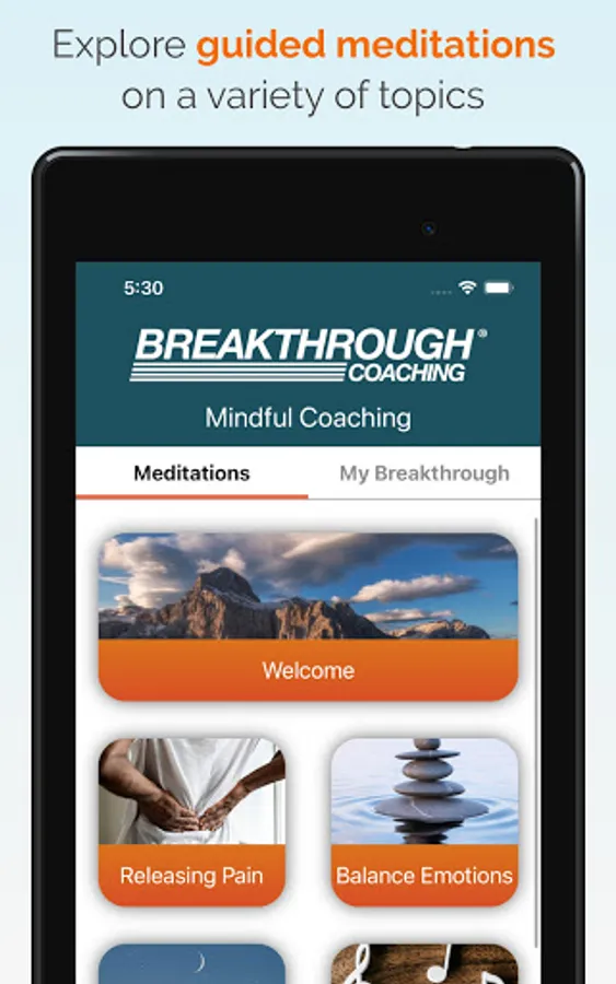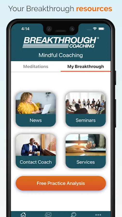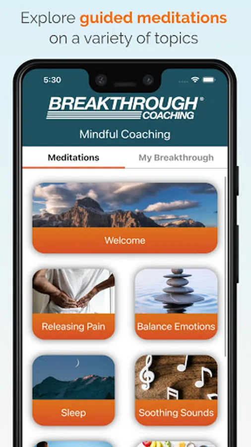 At Breakthrough Coaching, this begins with our “Mindful Coaching” approach. We weave the benefits of mindfulness throughout the coaching experience, beginning with your own mindful wellbeing. With this in mind, we’ve created the Breakthrough Coaching “Mindful Coaching” app where you’ll find a library of services to support your journey to personal and professional wellbeing, including: