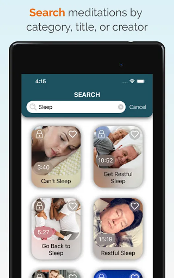 A searchable library of guided meditations and inspirational stories that relieve pain, balance emotions, motivate, and promote restful sleep.