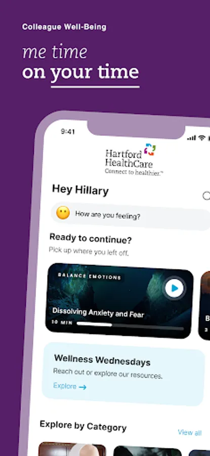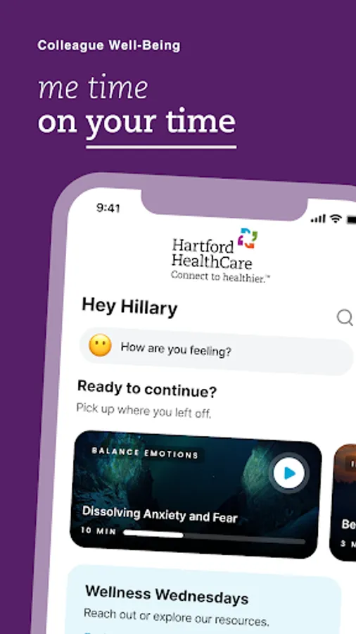Hartford Healthcare Colleague Well-Being is an app to help you practice “me time” on your time. Guided mindfulness moments, soothing sounds, mood tracking, well-being content and resources at your fingertips.