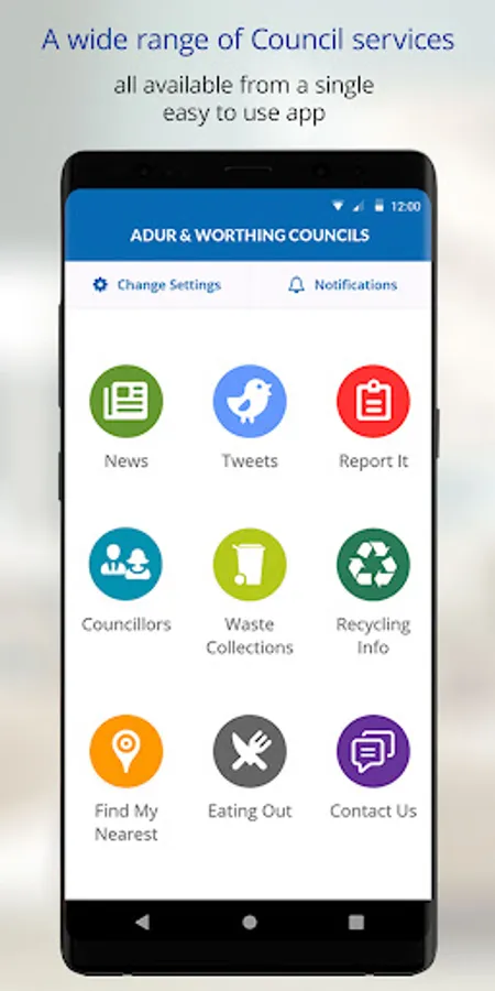 Designed to allow access to a variety of council services whilst on the go - the Adur & Worthing Council mobile app enables residents to keep up to date with the latest council service updates, quickly report incidents and find useful information about their property and the surrounding area.