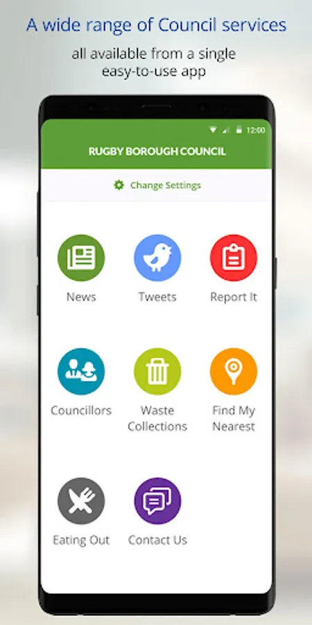Download the free Rugby Borough Council mobile app to keep up-to-date with the latest council news and tweets, report environmental problems quickly and easily, find nearby services and check your next bin collection date. You can also opt-in to receive push notifications about your next bin collections and issues affecting bin collection rounds.