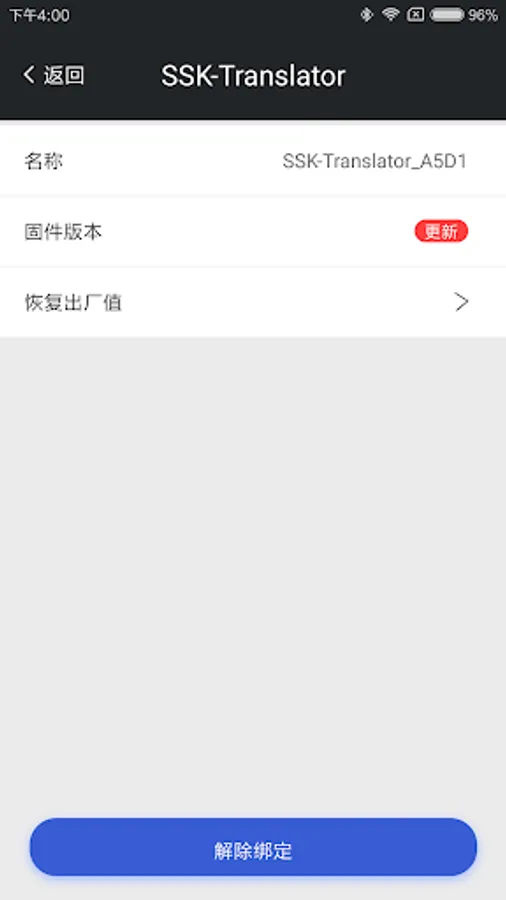 1.find the translator's parameters, sweep code binding Hello translator Bluetooth