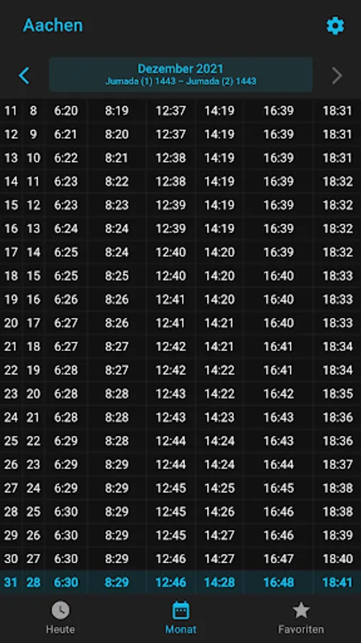 Simple app for global prayer times calculated using the "astronomical third of the night" method.