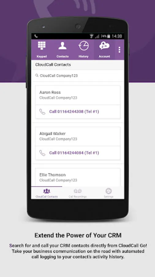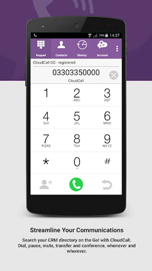 CloudCall Go! is the perfect solution for users who are constantly on the move. CloudCall Go! provides you with an easy, flexible way to reach your CRM contacts directly from your device - helping you to present a professional business presence wherever you are.
