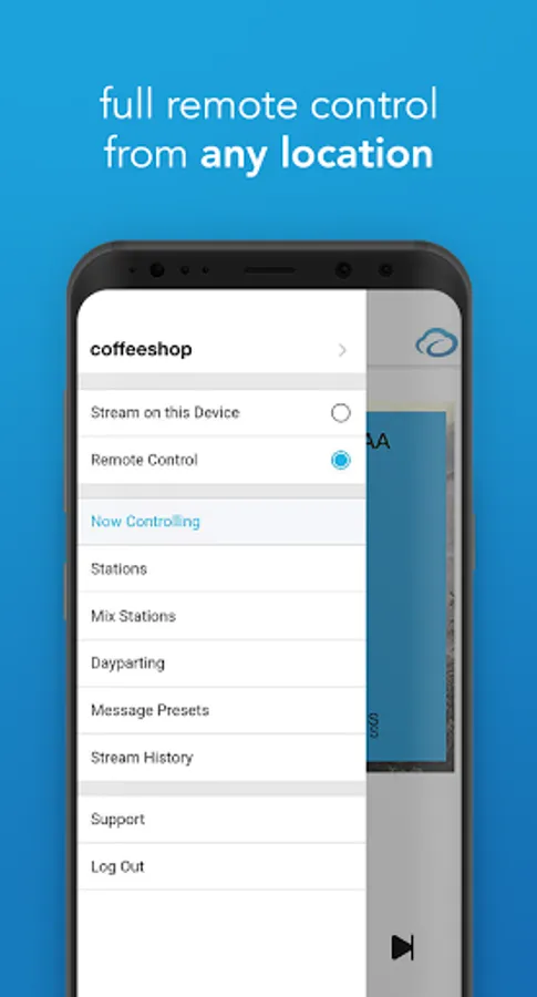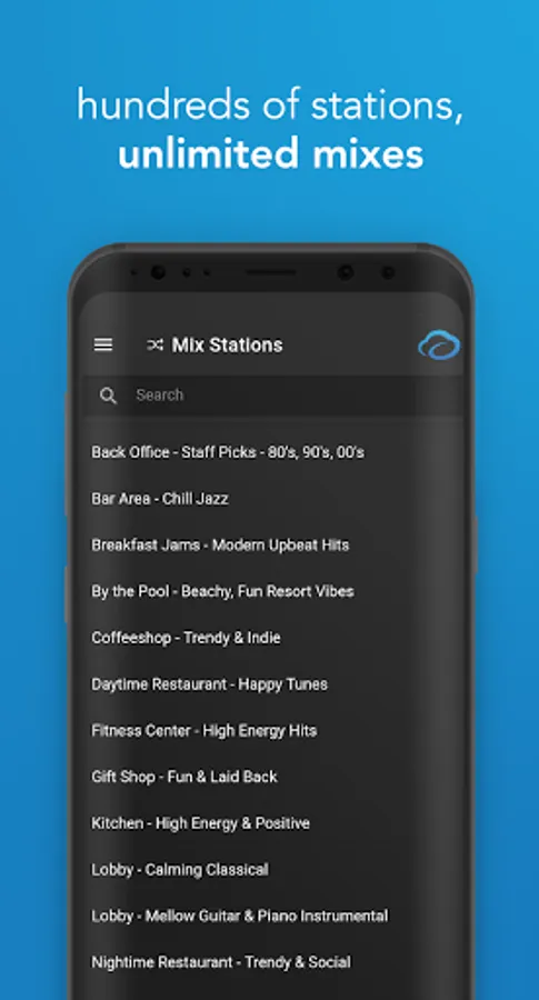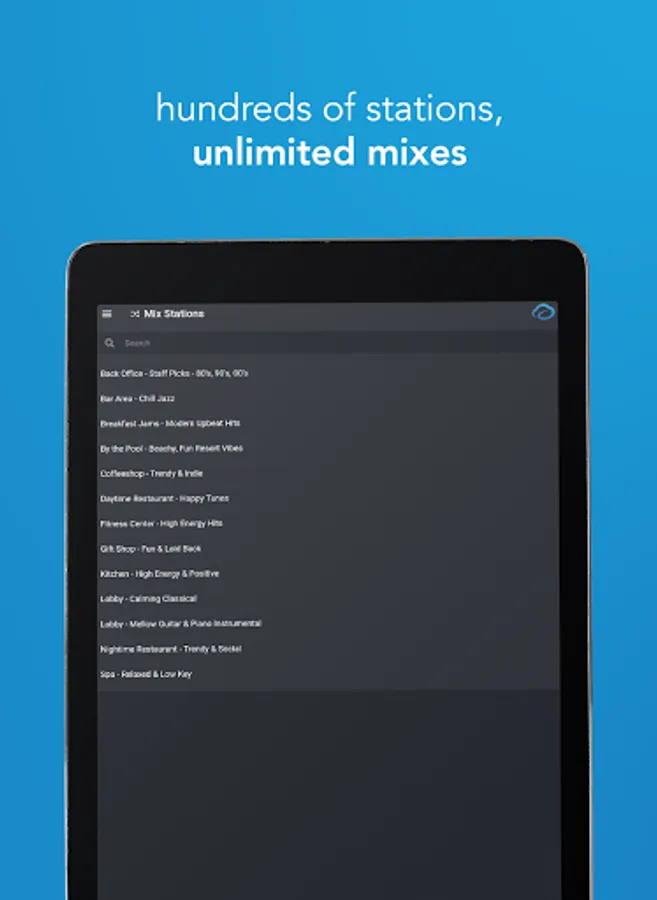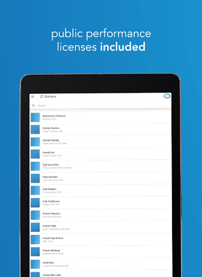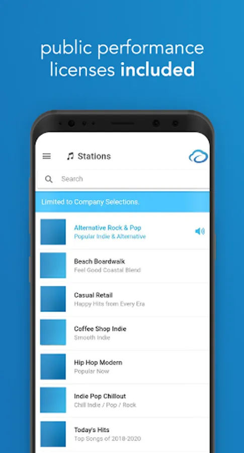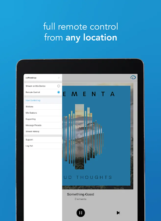 Stream the latest music into your business with Cloud Cover Music. Play and control clean, PRO licensed music in your retail store, restaurant, office or anyplace there is a public audience. With Cloud Cover Music, you are legally covered! This app gives full remote control for music and messages from anywhere. Easily change stations, stream, pause and remove songs that you don't like. Create your custom mix stations and automate day and time transitions from your online account.