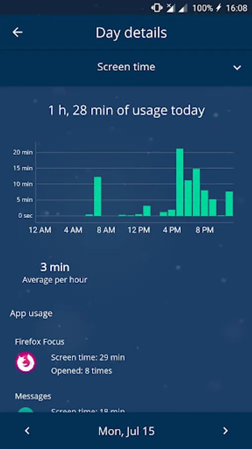This app is not only about the raw data. Even though we might be aware of the excessive amount of time in front of our smartphones, sometimes we need a bit of control. UsageSafe got you covered. With the app blocker functionality, you can specify limits for each app independently, so that when you exceed that limit, you won't be able to open it for the rest of the day. But don't even think about cheating. It might seem easy at first to just quickly adjust the limit after overusing specific app and mindlessly continue