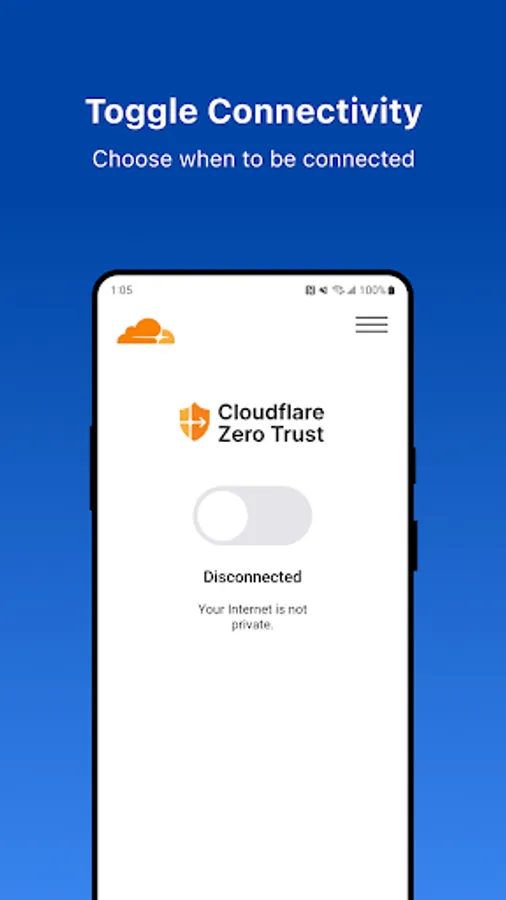 The Cloudflare One Agent creates an encrypted tunnel using VpnService to our global network where Cloudflare Gateway, Data loss prevention, Access, Browser Isolation and Anti-Virus policies can be applied. Please reach out to your company's IT or Security department for instructions on how to configure and use this application.