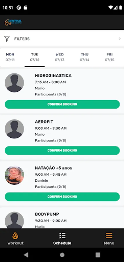 - Book classes through the app;