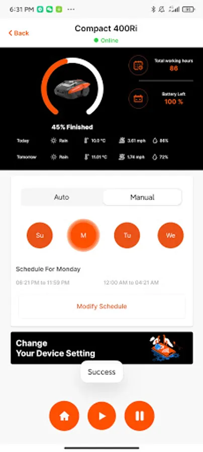 - Click Start, Stop, Home button to control your robotic lawnmower