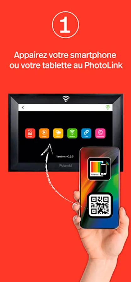 Please note: The Polaroid Photolink App only works with compatible Wi-Fi photo frame models (Photolink 2021; NPD1016PR).