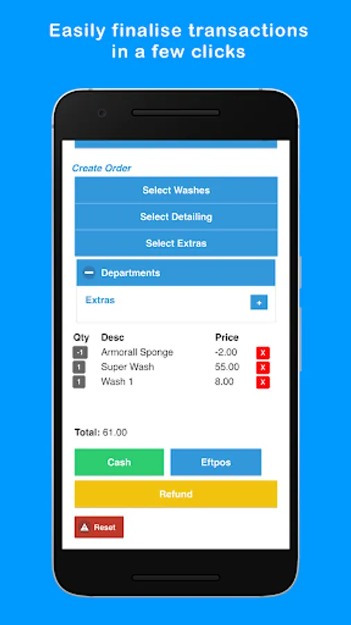 Developed specifically to run in a Car Wash site, this app brings the power and functionality of a traditional POS system to a mobile device, providing your business with a professional POS solution without the associated cost that comes with traditional POS hardware.
