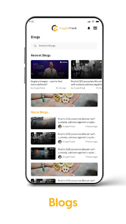 Crypto track app collects publications from various news sources such as Coin telegraph, Bitcoin.com, CoinDesk, Fork log, Twitter, etc. There are more than 100 websites in the list of sources and it is constantly updated with new ones.