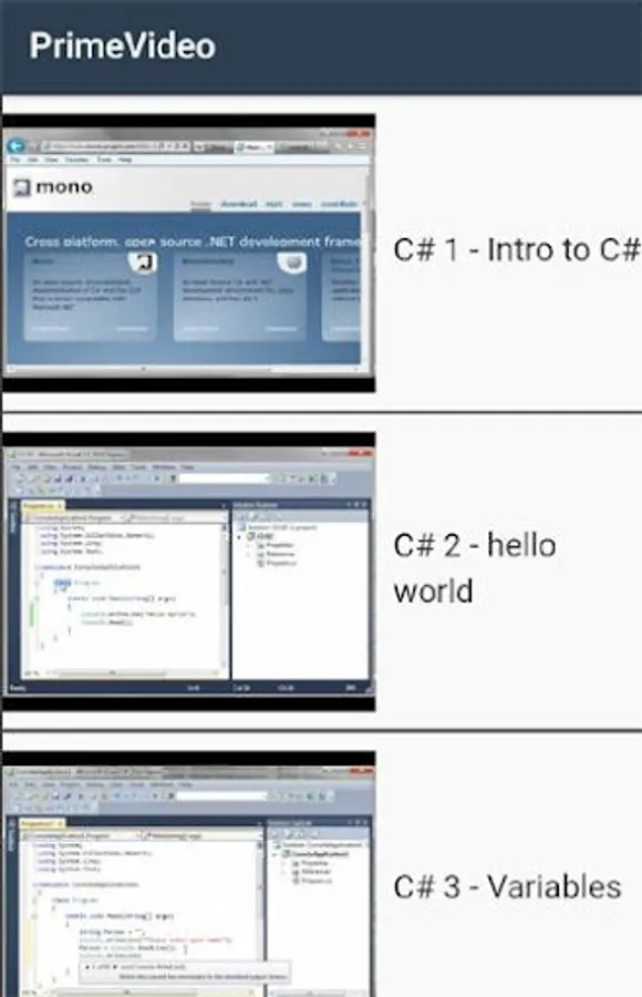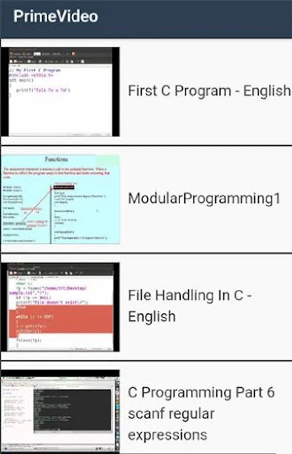 Programming video is an application to show online programming language video tutorial like programming C, C++, Java, and C#