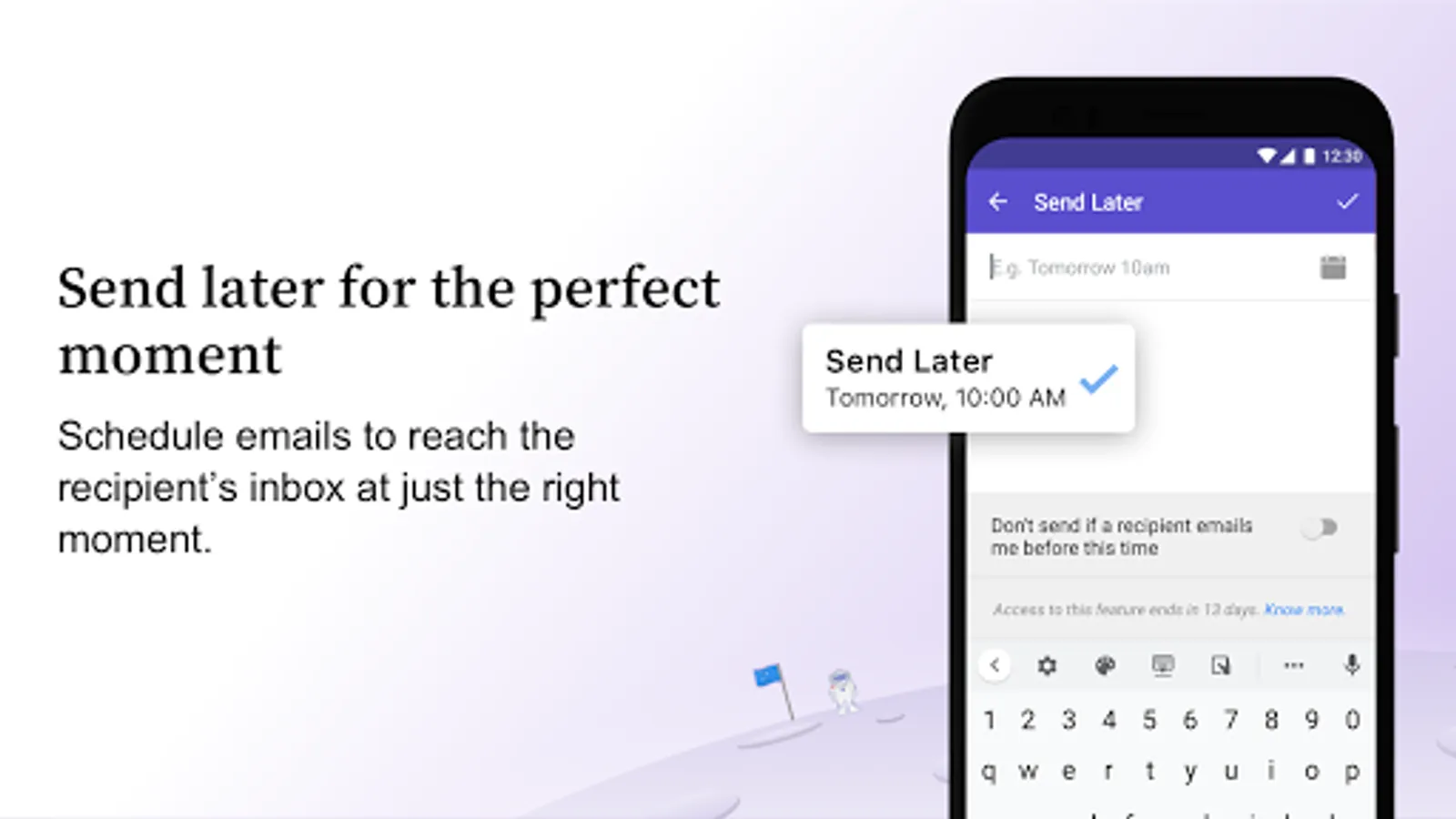 Schedule emails to be sent later and have them delivered to the recipient’s inbox at just the right moment.